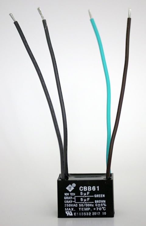 Black speed switch with only three terminals connected, two wire capacitor. In the above diagram i shown an image of fan motor capacitor which cbb61 and it s a 5 wire capacitor the two gray wire are common and red is 4 5 uf 250v and brown is 6 uf 250 volts and purple is 5 micro farad and 250 v. Products ceiling fan wiring diagram capacitor cbb61 vac uf capacitors.